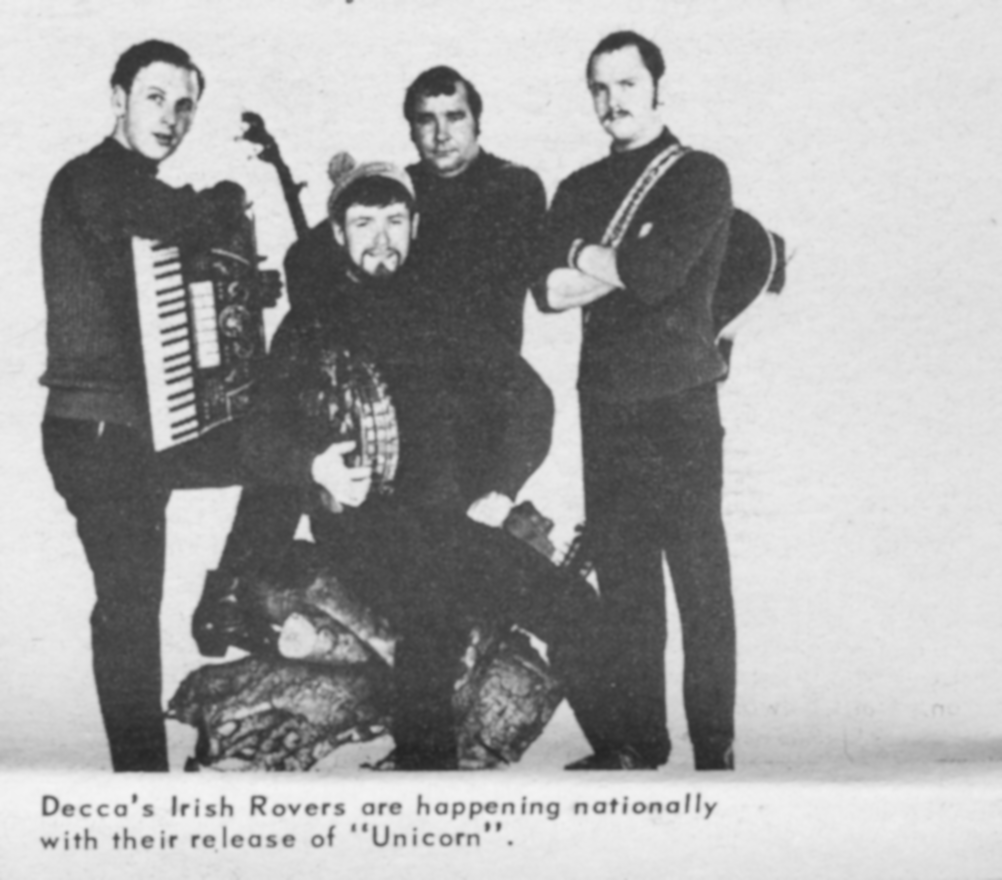 The Irish RoversThe Irish Rovers The Irish Rovers Irish-Canadian musical group This article is about the band. For the folk song, see The Irish Rover. For the newspaper, see The Irish Rover (newspaper). The Irish Rovers is a group of Irish musicians that formed in Toronto, Ontario, Canada in 1963[1] and named after the traditional song "The Irish Rover". They are best known for their international television series, contributing to the popularization of Irish music in North America, and for the songs "The Unicorn", "Drunken Sailor", "Wasn't That a Party", "The Orange and the Green", "Whiskey on a Sunday", "Lily the Pink", "Finnegan's Wake", and "The Black Velvet Band". Quick facts Background information, Also known as ... The Irish Rovers The Irish… (Source: Wikipedia)
