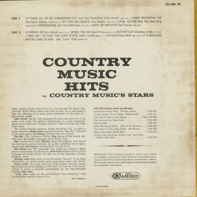 Country Music Hits By Country Music Stars
