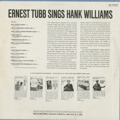 Ernest Tubb Sings Hank Williams