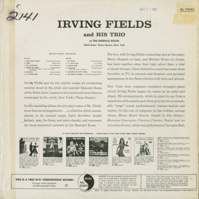 Irving Fields And His Trio At The Emerald Room