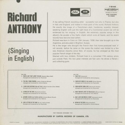 Richard Anthony Sings In English