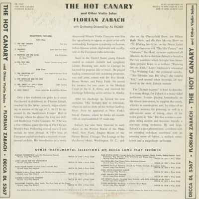 The Hot Canary And Other Violin Solos By Florian Zabach